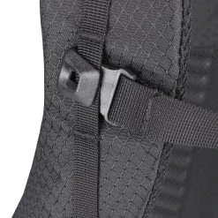 - Øverst har vi 2 stropper det strammer din rygsæk ind, så den holdes tæt til kroppen – også når den ikke er fyldt helt op. Spænderne er et hook buckle i aluminium