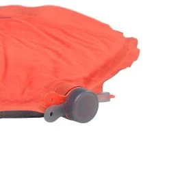 Ventilen giver en god luftgennemstrømning, der sikrer, at dit underlag har lettere ved at puste sig op, og at du har lettere ved at pakke det sammen i posen igen (her vendes ventilen til ‘deflate’). De første gange du bruger liggerunderlaget, skal du muligvis hjælpe kernen med at suge luft ind ved at motionere liggeunderlaget lidt og puste ekstra luft i.