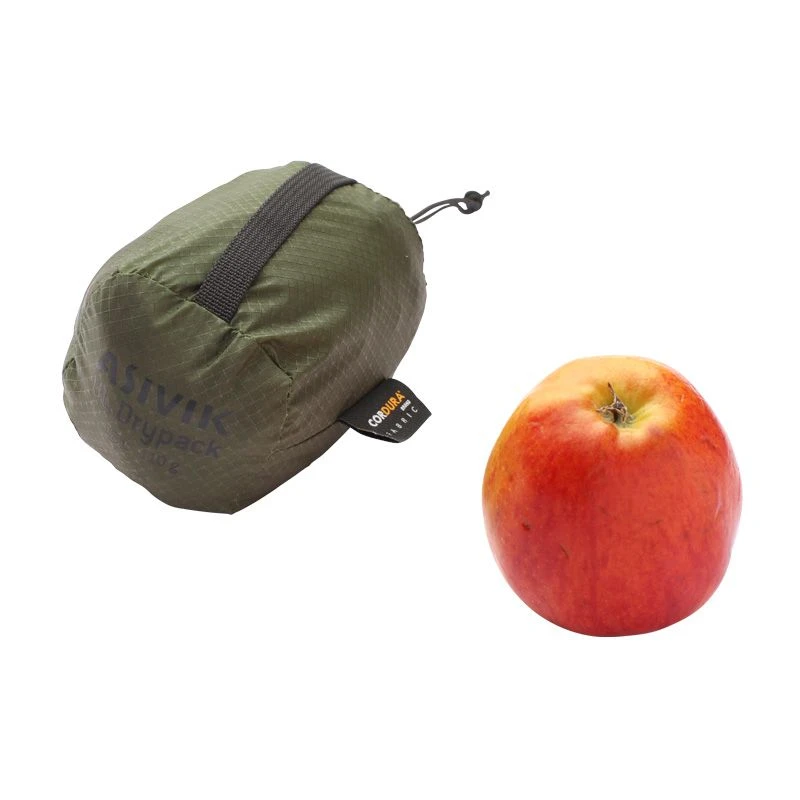 Asivik DryPack UL er en ultralet og vandtæt turrygsæk på 18 liter, der sammenpakket ikke fylder mere end et æble.