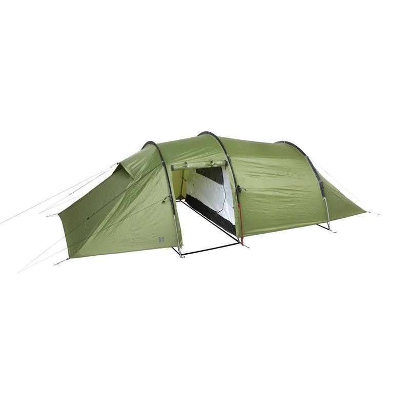 Asivik Wilderness 3 er et rummeligt og komfortabelt 3-personers tunneltelt med god plads til bagage og madlavning – og så er der god siddehøjde både i inderteltet og i den forlængede apsis.