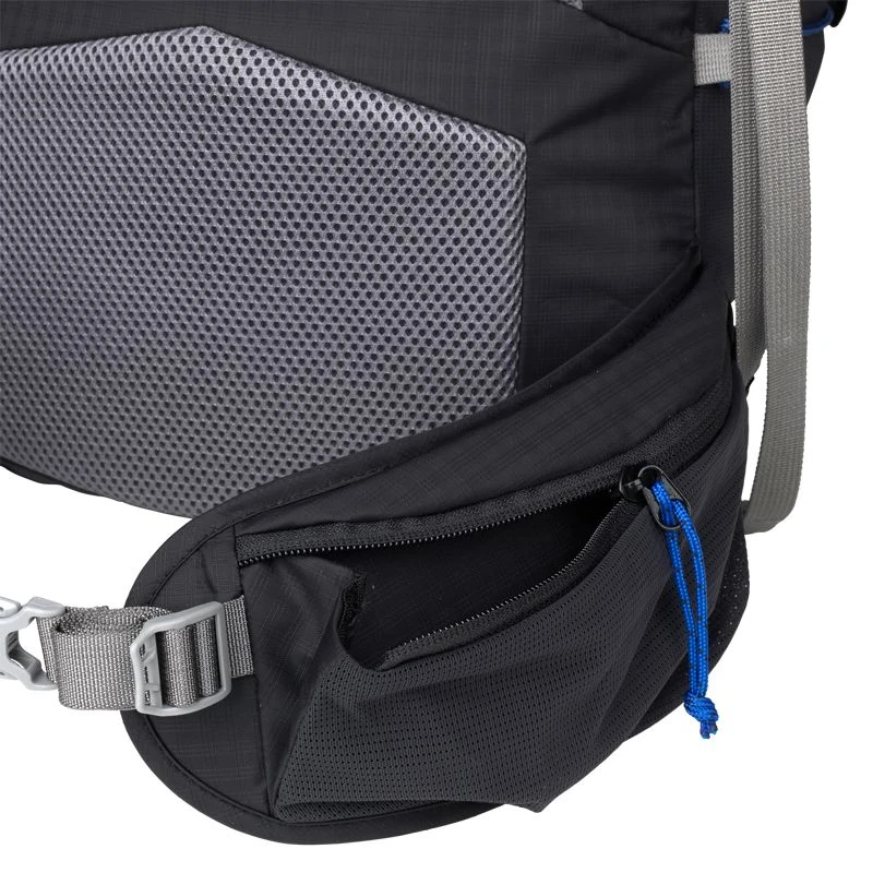 Den har et stort hovedrum, der lukkes med en U-formet lynlås, så du kan få et hurtigt og nemt overblik over indholdet. På siderne er to strækbare vandflaskelommer, der også nemt kan bruges til en hat, sæt handsker eller anden du skal kunne komme hurtigt til. På fronten er der en stor elastik lomme, der er genial til en trøje, regntøj eller cykelhjelmen. På hofteremmen er der yderligere to små lynlåslommer til energibarer eller andet, du gerne vil kunne komme til, når du er i bevægelse.