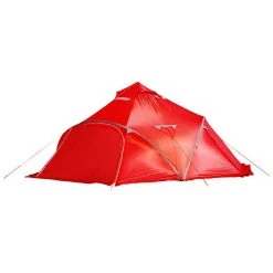Denne udgave af Wigloen er knaldrød, hvilket gør både gør den ekstra synlig og nem at finde i fjeldet. Det flotte telt skiller sig ud på campingpladsen, hvor den røde farve bare lyser op.