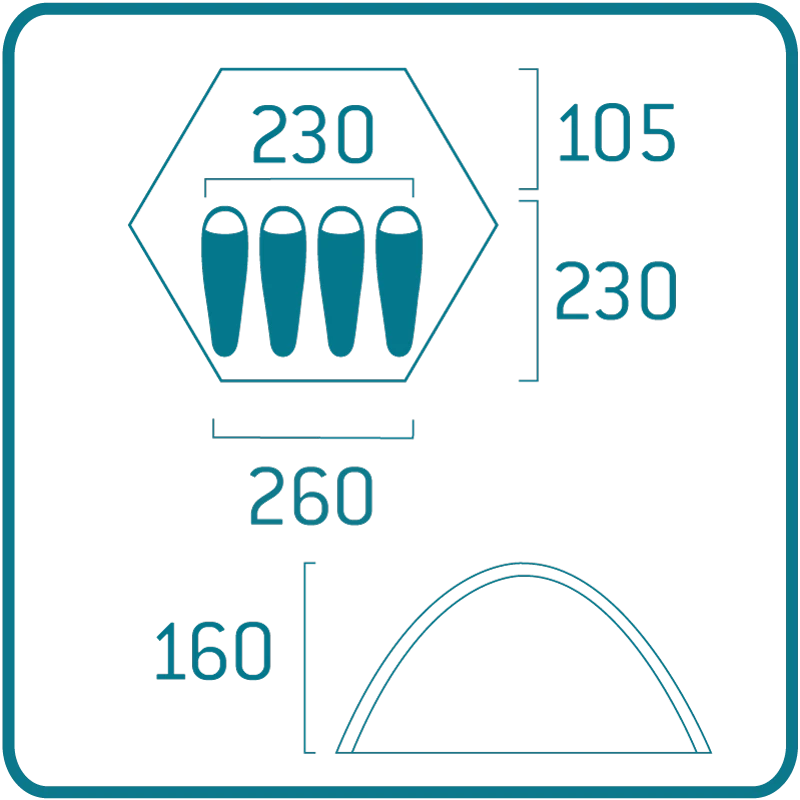 - Mål i cm, indertelt: 230 x 230 x 160