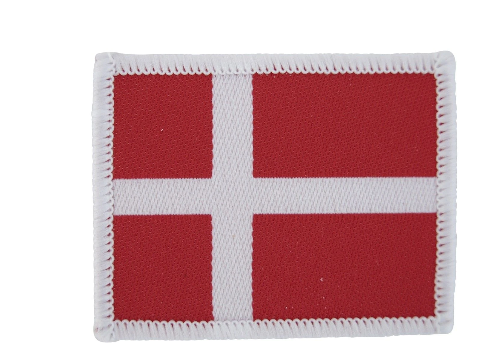 Lille Dannebrog med strygeplast på bagsiden. Nem at stryge eller sy på rygsækken.