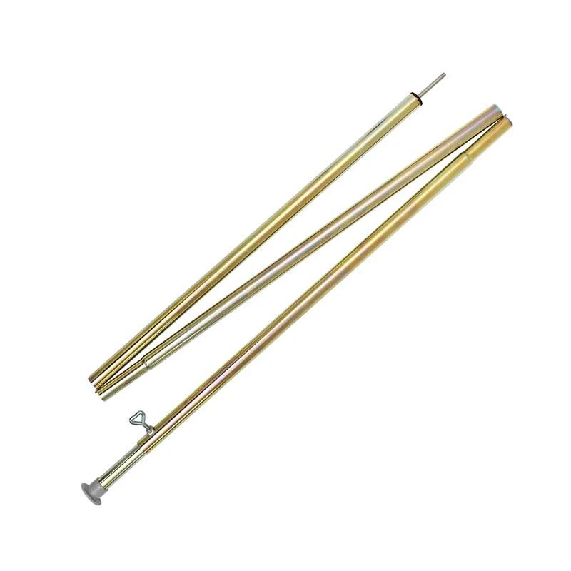 Kraftig stålstang i 4 led, velegnet til KIT-KAT spejdertelte. Der er gennemgående metalkæde (med fjeder) i stangen, så man kan ikke kan samle stængerne forkert, eller glemme et led når der pakkes sammen. I bunden af teltstangen er der en “jordtallerken” i plast, så stangen ikke borer sig ned i underlaget. I toppen er der en “pind” til at sætte gennem øjer i telte, solsejl og andet.