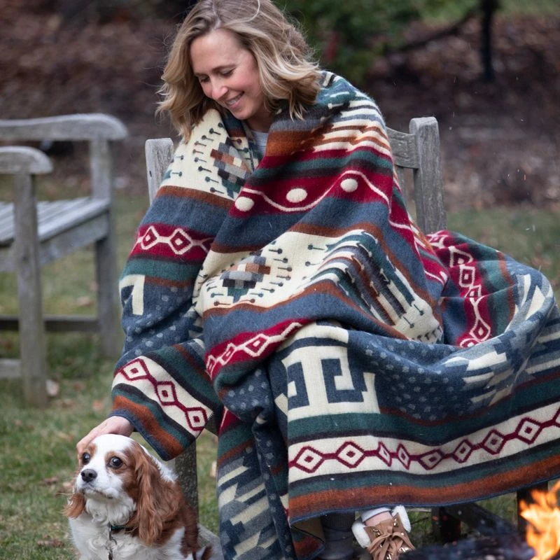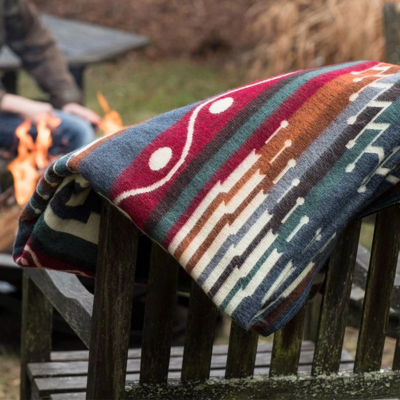 Ecuadane Mountain Plaid er et stort blødt outdoortæppe, der er fremstillet i Andesbjergene og grundet brugen af alpakauld er eksta blødt og lækkert.