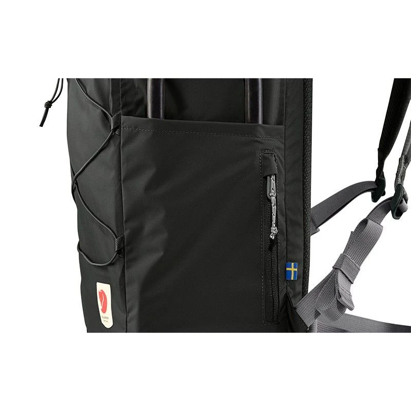 High Coast Rolltop lukkes effektivt og helt tæt med rullelukning og er syet i let og vandtæt 100% genanvendt nylon. For at sikrer vandtætheden er alle syninger tapet. Bunden er fremstillet i ekstra slidstærkt Bergshell-materiale, der indeholder 31% genanvendt nylon.