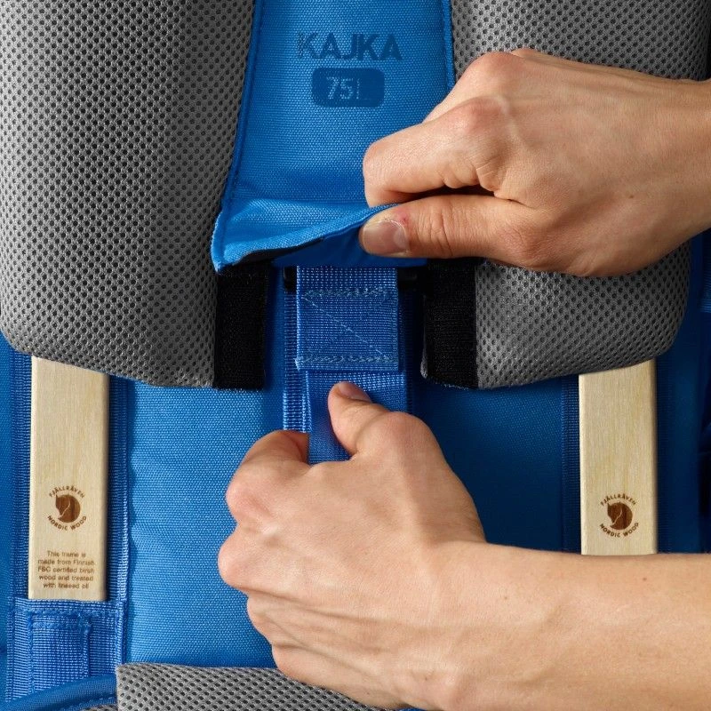Kajka er lavet med træramme, der giver rygsækken styrke til den tunge oppakning. Yderligere er trærammen miljøvenlig – lige i Fjällräven ånd.