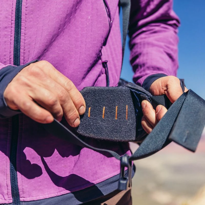 I tillæg til den stabile ryg har Baltoro et kraftigt hoftebælte, der virkeligt bærer meget vægt og dermed aflaster ryggen. En super feature ved hoftebæltet er, at det kan bevæge sig uafhængigt af rygsækken, hvilket medvirker til, at dit tyngdepunkt altid er i balance, hvilket er en kæmpefordel i ujævnt fjeldterræn.