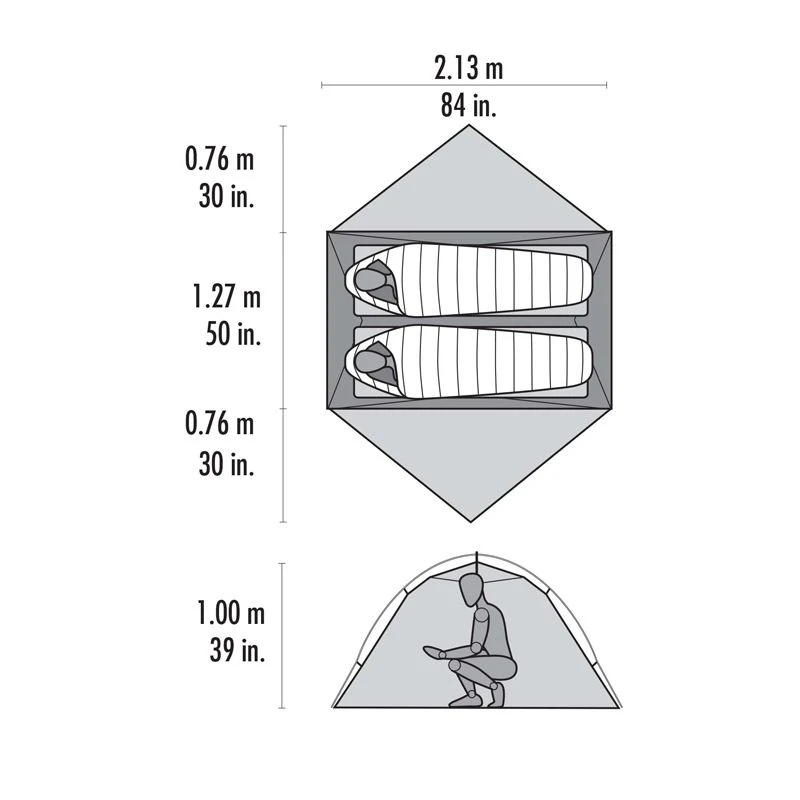 Stangkonstruktionen giver stor komfort i teltet, da den ”løfter” teltvæggene stejlt op i enderne, hvilket giver ekstra godt opholdsrum og siddeplads i inderteltet. Du får faktisk en reel liggelængde på 213 cm, en bredde på 127 cm og en god siddehøjde på hele 100 cm i det meste af inderteltet. Den gode plads giver bare bedre komfort i teltet, uanset om du om morgenen skal tage tøj på og pakke grejet sammen eller I ligger vejrfast i hårdt vejr.
