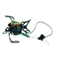 Tråden på brændstofflasken har nemlig samme diameter som gasflaskerne. Du kan forlænge gas-sæsonen noget, da der både er en høj-effektiv indstilling og en vinterindstilling. Der er også støtteben til at holde gasdåsen på hovedet, hvilket hjælper yderligere.