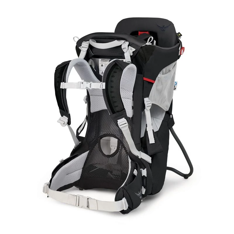 Bæresystemet sikre der god ventilation til ryggen og stolen er yderligere forsynet Ospreys Fit-on-the-Fly hoftebælte, der giver optimal bærekomfort.