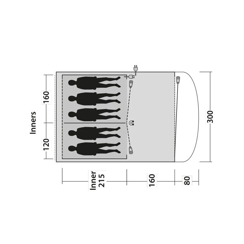Outwell Oakwood 5 er bygget op som et klassisk tunneltelt med en stor sovekabine, et fortelt til ophold og et lille forsejl, der giver ekstra skygge på de solrige dage og beskytter indgangspartiet mod regn på de våde…