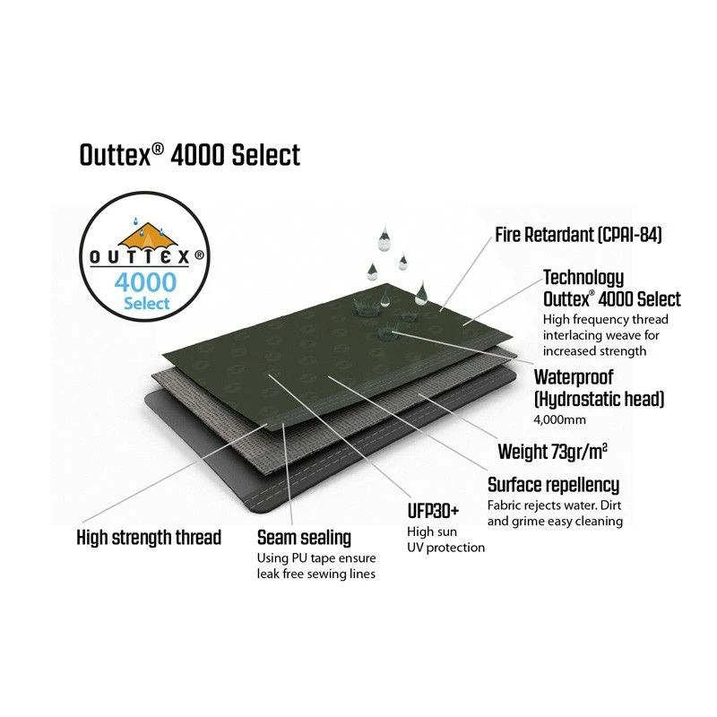 - Oversejl: Outtex® 4000 Select, 100% polyester