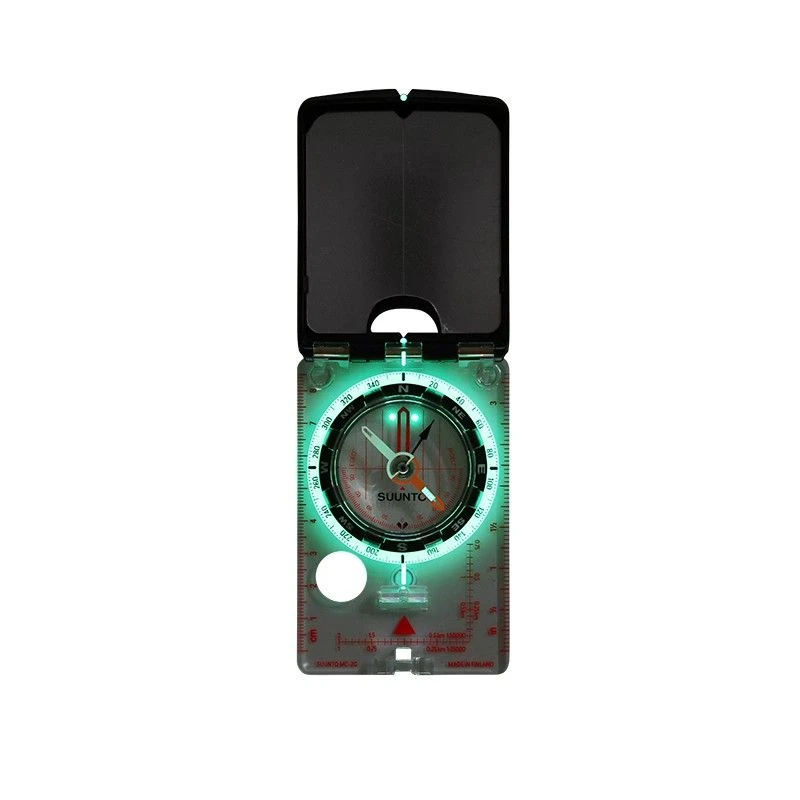 Endvidere er der selvlysende markeringer, som gør kompasset velegnet i tusmørke. Kan også måle vinkler og stigninger.